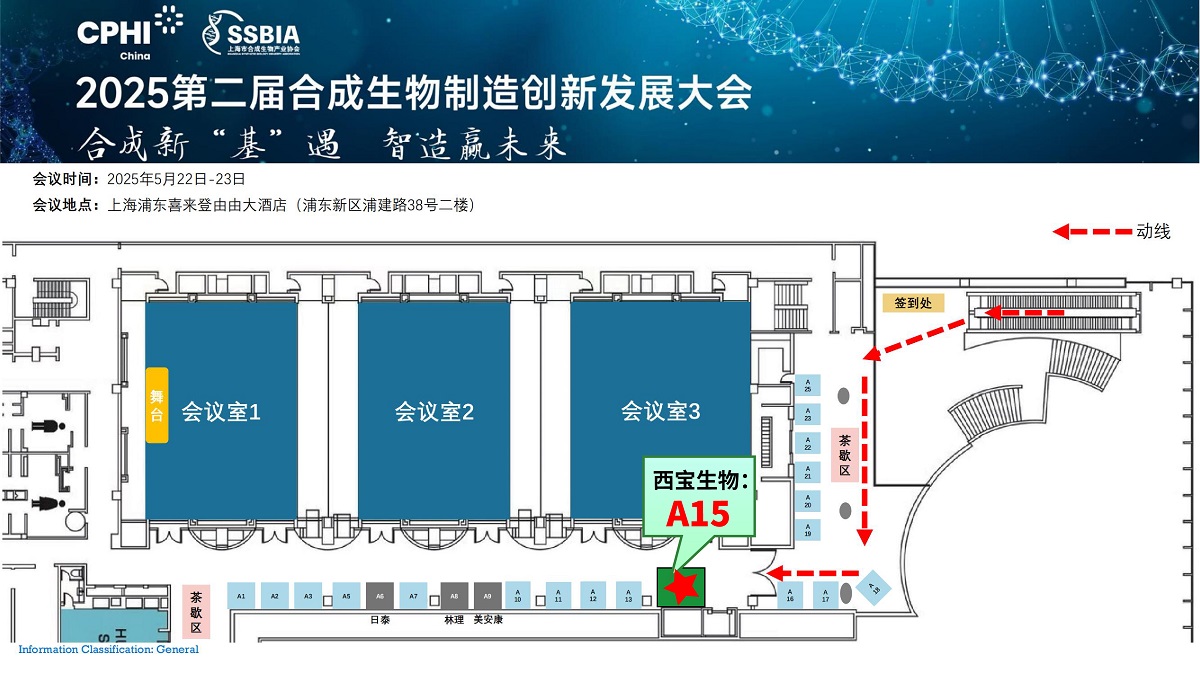 西寶生物作為上海市合成生物產(chǎn)業(yè)協(xié)會會員單位,也十分榮幸參與到此次會議中,我們的展位號是A15,靜候八方來客,與我們共同攜手探索生物制造領(lǐng)域的更多可能,共拓創(chuàng)新篇章。