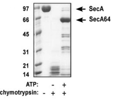 ATP添加下糜蛋白酶對(duì)SecA的不完全酶切