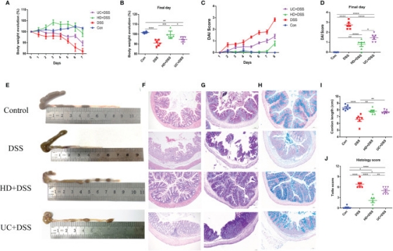 ①.DSS誘導(dǎo)的潰瘍性結(jié)腸炎模型的病理改變與人類潰瘍性結(jié)腸炎相似;