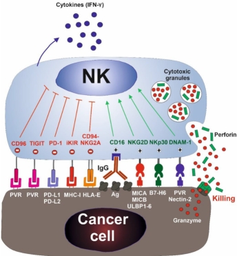 NKG2D | 激活型受體 | 識(shí)別在應(yīng)激或腫瘤細(xì)胞表面表達(dá)的分子(如 MICA, MICB)。 |