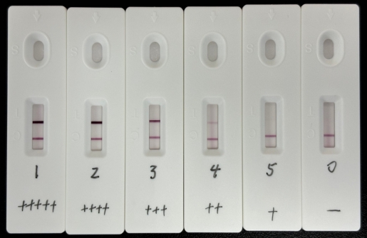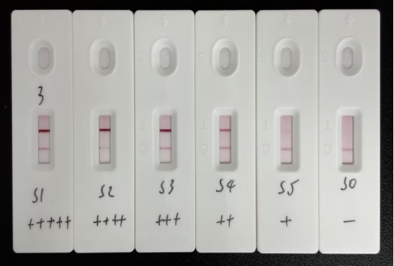 血紅蛋白(FOB)抗體(貨號(hào):EKY0069H)標(biāo)記彩色乳膠+血紅蛋白(FOB)抗體(貨號(hào):EKY0069G)劃膜(彩色乳膠層析配對(duì)組合2)