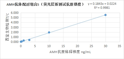 4.3熒光免疫層析平臺(tái)抗體配對(duì)組合5:AMH抗體(貨號(hào):EKY0328H)標(biāo)記熒光微球+AMH抗體(貨號(hào):EKY0328I)劃膜